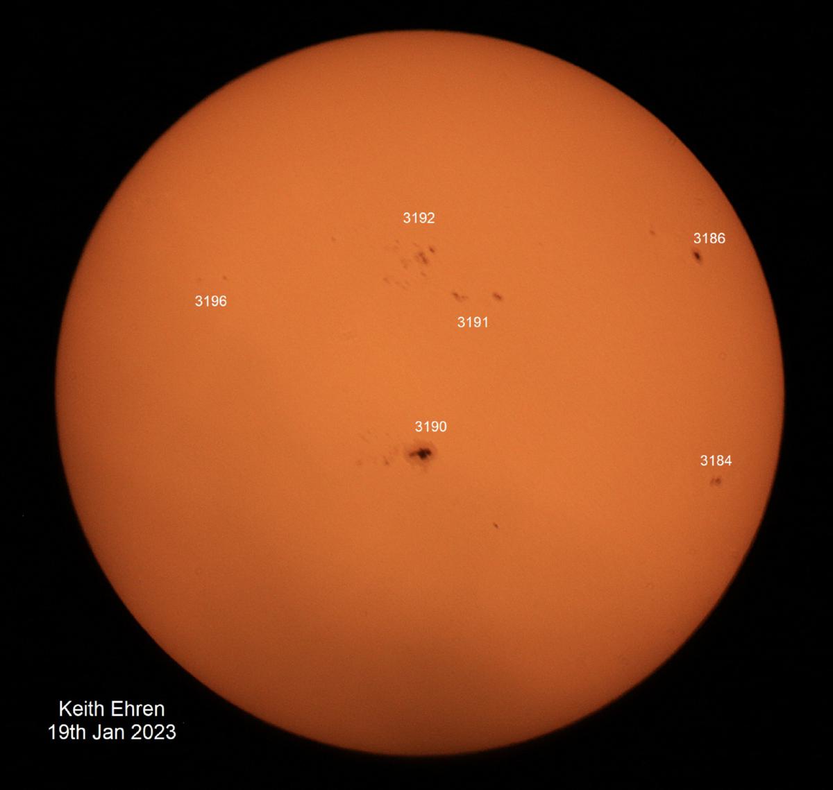 19th Jan 2023. Solar activity is picking up nicely with multiple sun spot groups. This is the most active the Sun has been so far in this cycle with a few M class flares associared with region 3190.