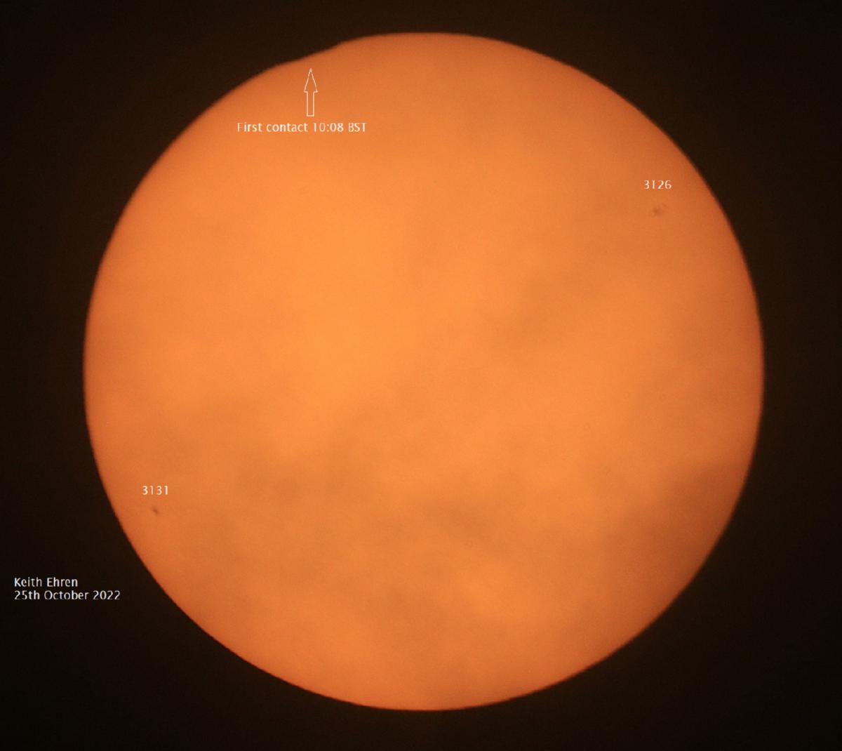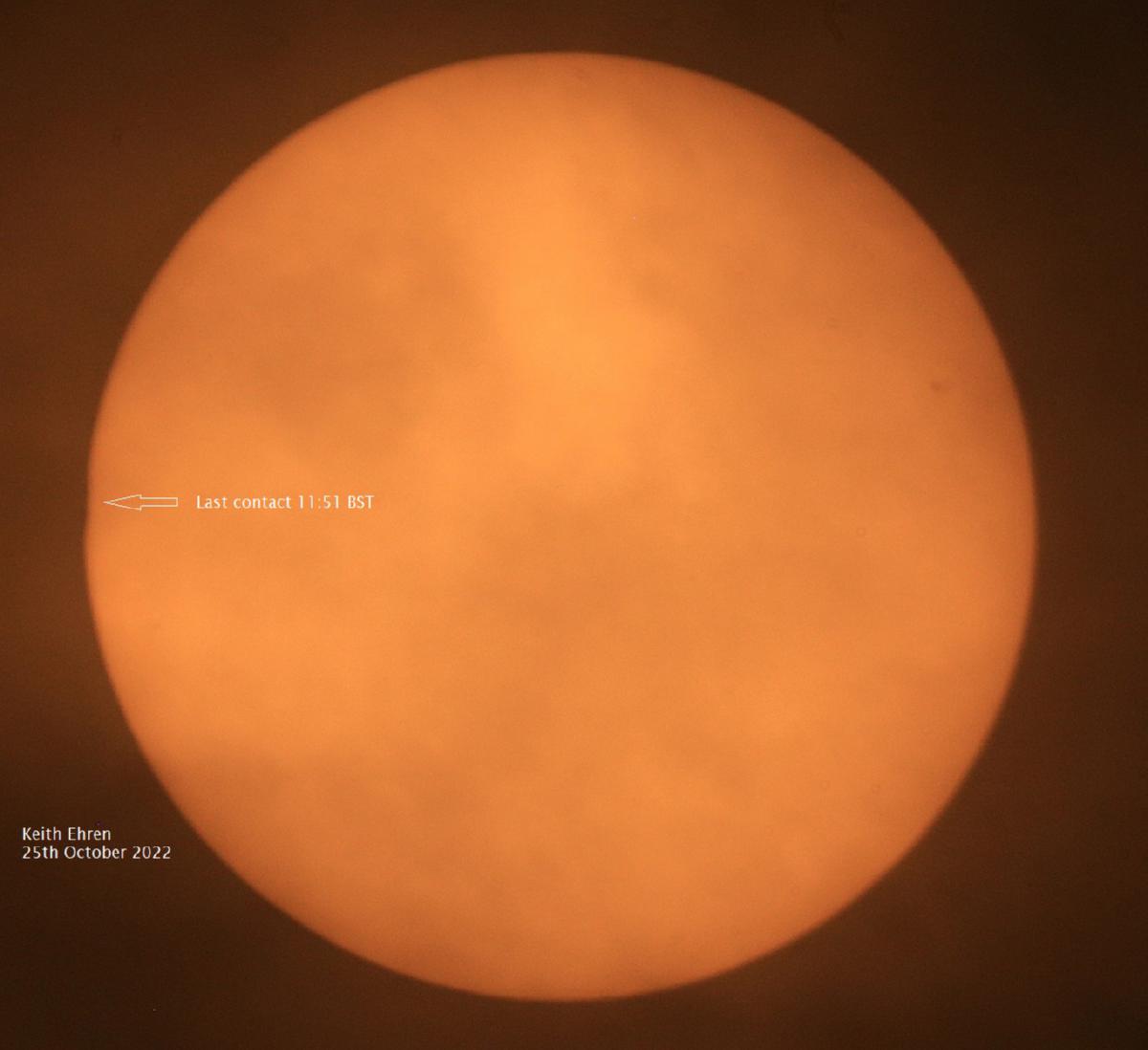 - First contact, max eclipse and last contact. All taken through hazy cloud.