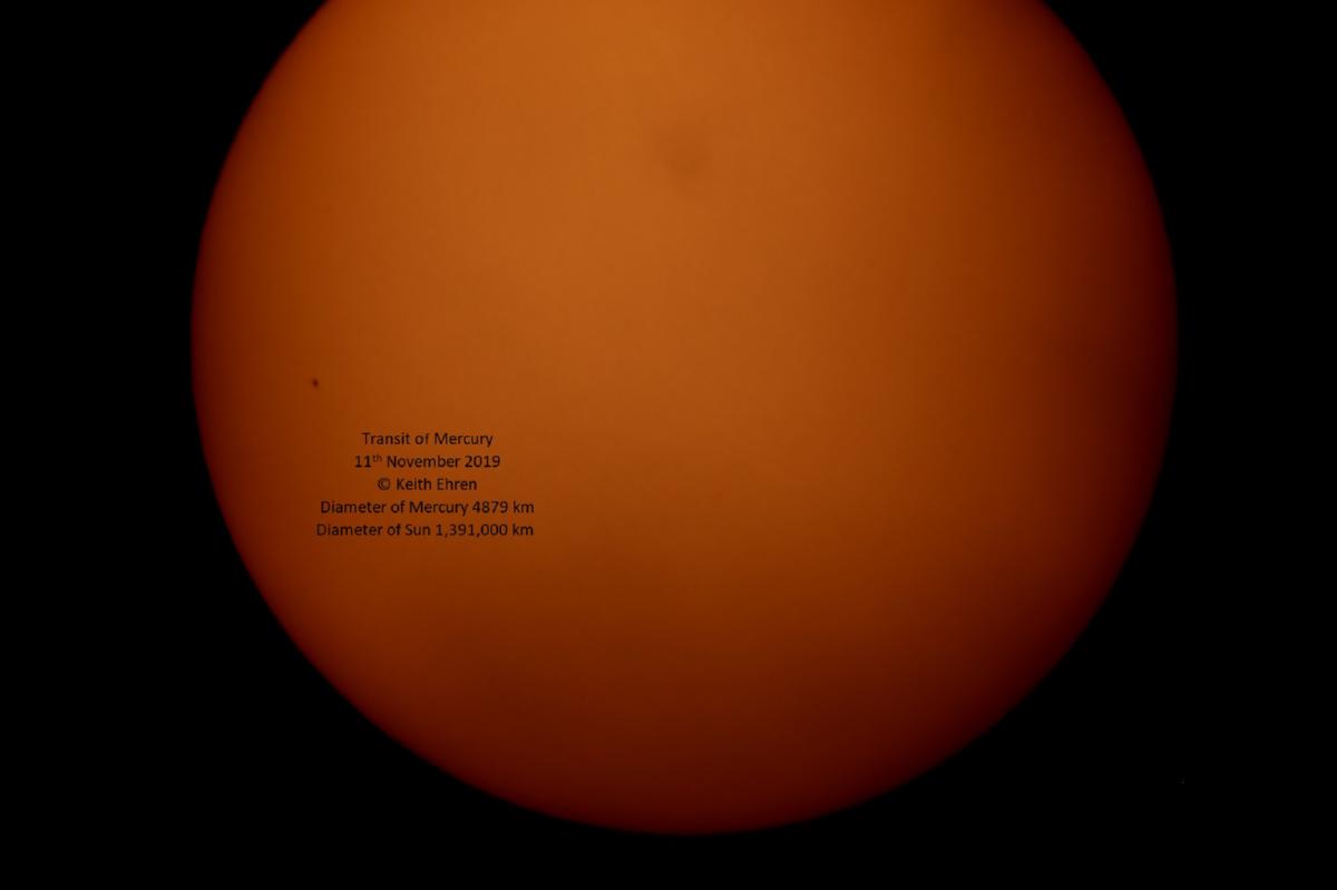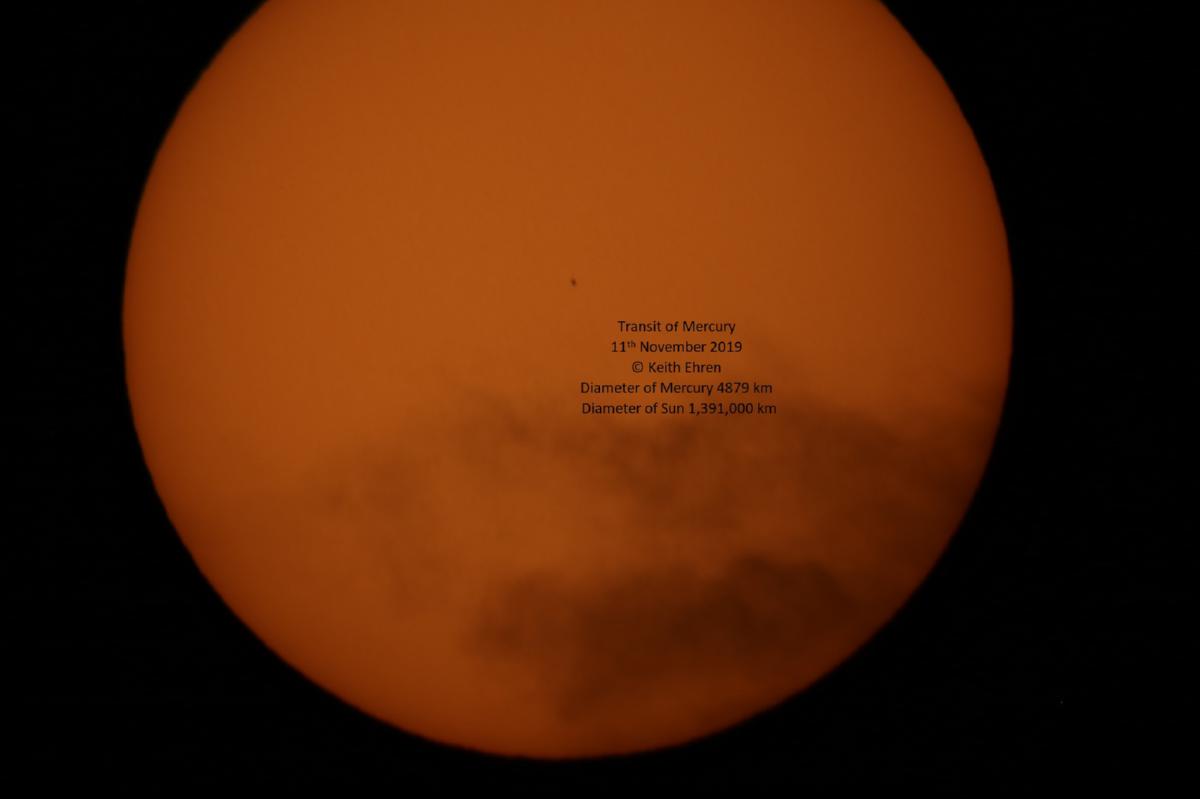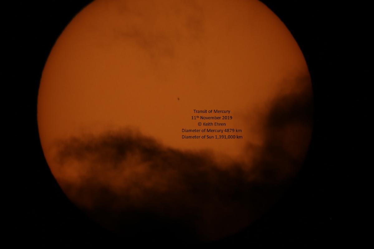 Transit of Mercury on 11th November 2019. Three images taken through heavy cloud (the usual U.K. weather!).