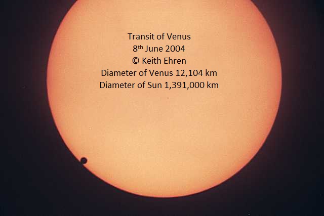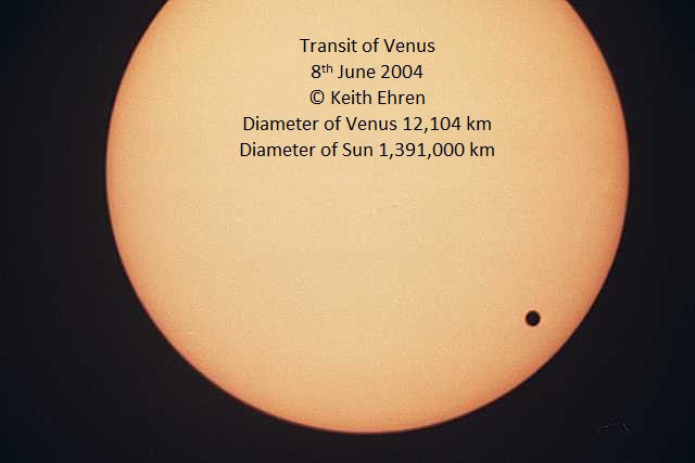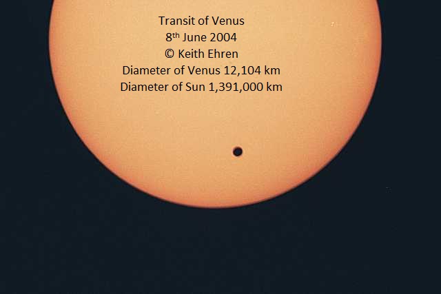 Transit of Venus on 8th June 2004. Three images with reasonable weather througout the transit. You can see the size difference of Venus compared to Mercury above.