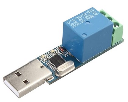 I created this application to control a USB relay such as the one shown below in my observatory for switching on and off a mains electricity fed 230 volt AC (red bulb) lamp but it could be used for switching on an off any similar device.